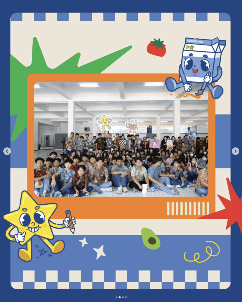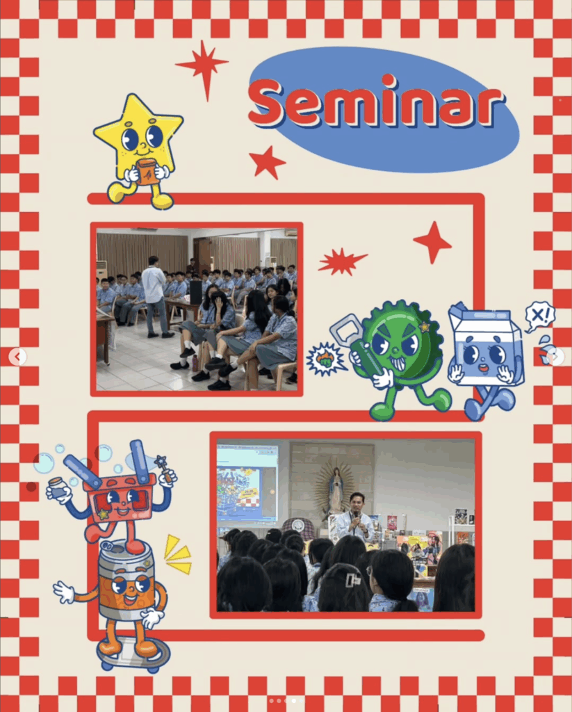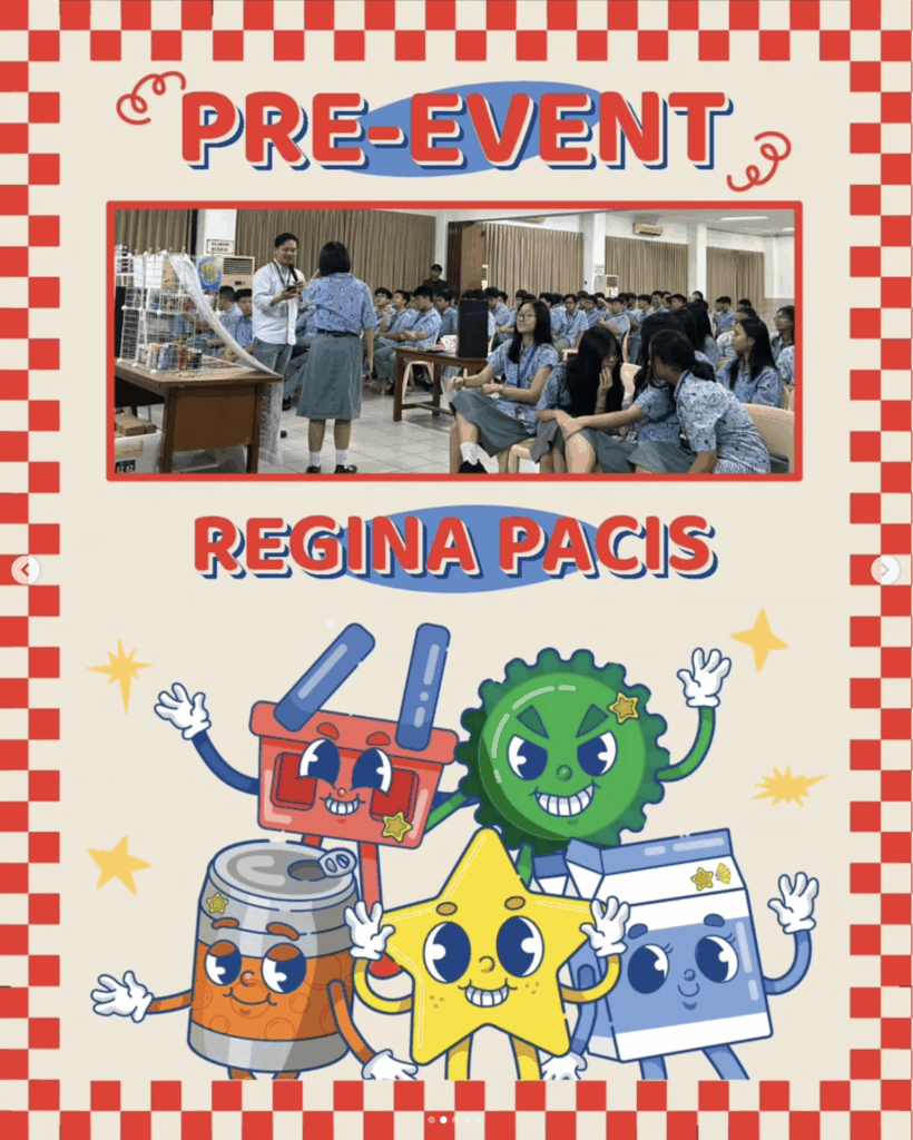 Salah satu rangkaian pre event diadakan di SMA Regina Pacis Jakarta, dengan jumlah peserta mencapai 150 siswa dari kelas 10, 11, dan 12. Suasana kegiatan berlangsung meriah dan penuh semangat. Para siswa tampak antusias dalam menuangkan ide, menggambar sketsa desain, hingga mendiskusikan konsep visual dan warna yang menarik untuk kemasan cookies mereka.